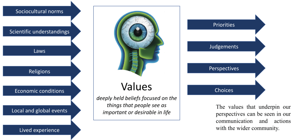 An external stimulus affect someone’s value and later their perspective. How do you differentiate values and perspectives?