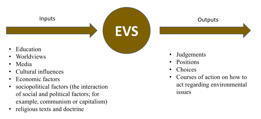 | Anthropocentrism – A People-Centered EVS | Emphasizes the importance of inclusive participation in environmental decision-making across all levels of society | People act as stewards of global sustainability, ensuring responsible management of natural resources. Sustainable global systems can be maintained through taxation, environmental regulations, and legislation. Effective management requires strict regulation by independent authorities while also promoting public involvement. Participation helps educate individuals about environmental issues, making them more accountable for their impact. Engaging local and marginalized communities, such as indigenous groups, is crucial as they often possess valuable ecological knowledge. Advocates of democracy argue that everyone has a right to influence how shared natural resources are managed. |