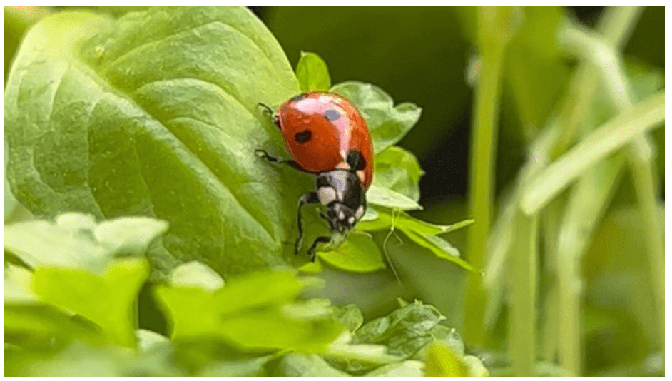 Let’s list down what present in this ecosystem! We can clearly see a ladybug, aphids and some vegetation. These are living things are are interacting with each other in many different ways. These living things are now categorised as the biotic factors.What we can’t see in this photograph is non-living factors or components or also known as the abiotic factors. These are essential parts of an ecosystem to be sustaining. For example, the vegetation requires water, CO2 and light to carry out photosynthesis. In addition, it also requires nutrients such as nitrates and phosphates from the soil to grow. On the other hand, the animals require oxygen to respirate (the plants also respirate in the dark). The relative humidity and temperature in this ecosystem seem to be at the optimal level for this ecosystem to self-sustain itself