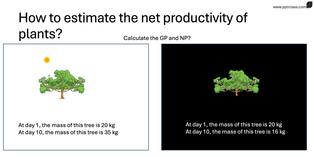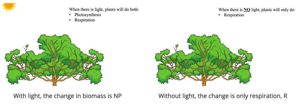 - NP is the gain in energy or biomass per unit area per unit time remaining after allowing for respiratory losses (R).