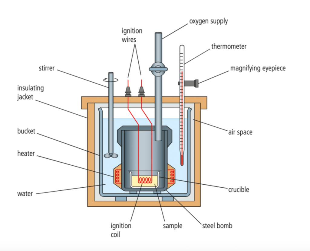 - Once dry biomass has been obtained, the combustion of samples under controlled conditions gives quantitative data about the amount of energy contained per unit sample (e.g. per gram) in the material