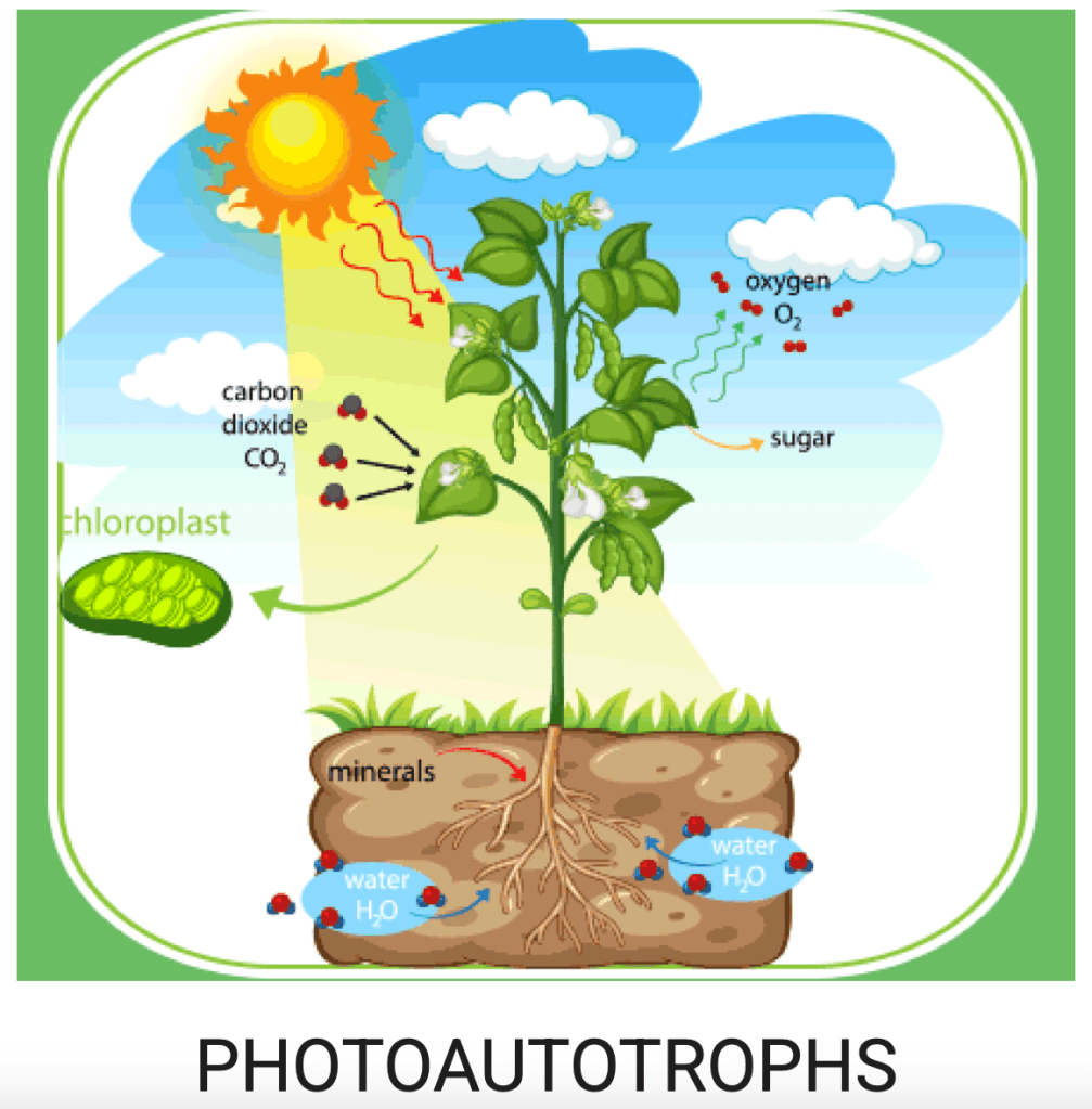 - Organisms that use sunlight energy to create their own food are called photoautotrophs. All green plants are photoautotrophs but not all producers use sunlight to make food. For example, some bacteria use chemical energy rather than sunlight to make sugars