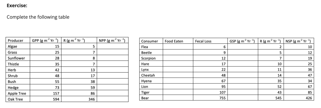 - the gain by producers (autotrophs) in energy or biomass per unit area per unit time.
