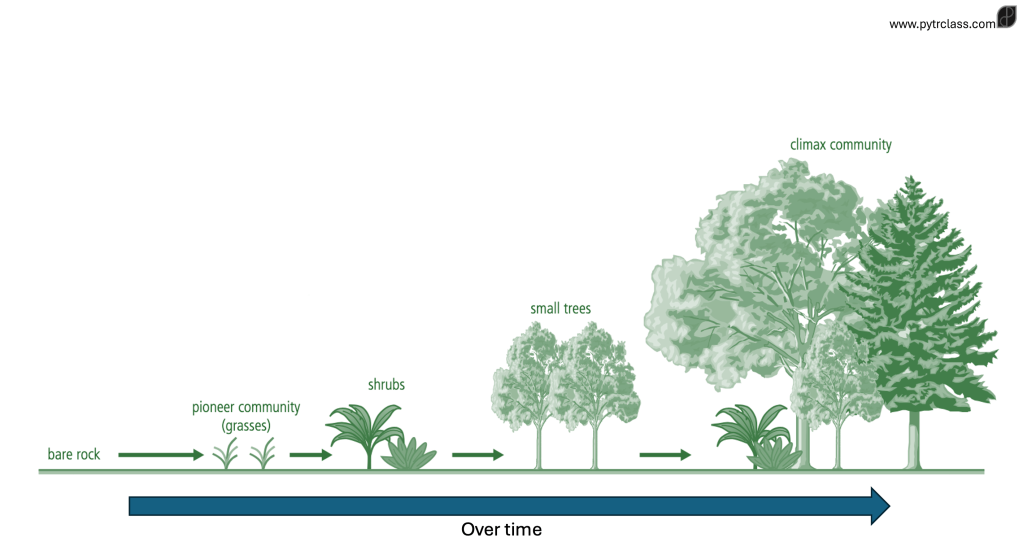 Succession is a fundamental ecological process that drives the gradual transformation of ecosystems over time. Whether occurring in newly formed landscapes (primary succession) or recovering disturbed environments (secondary succession), this process follows a predictable sequence of species replacement, soil formation, and increasing biodiversity. Through succession, ecosystems become more complex, stable, and resilient, ultimately reaching a climax community that reflects the long-term equilibrium of the environment.