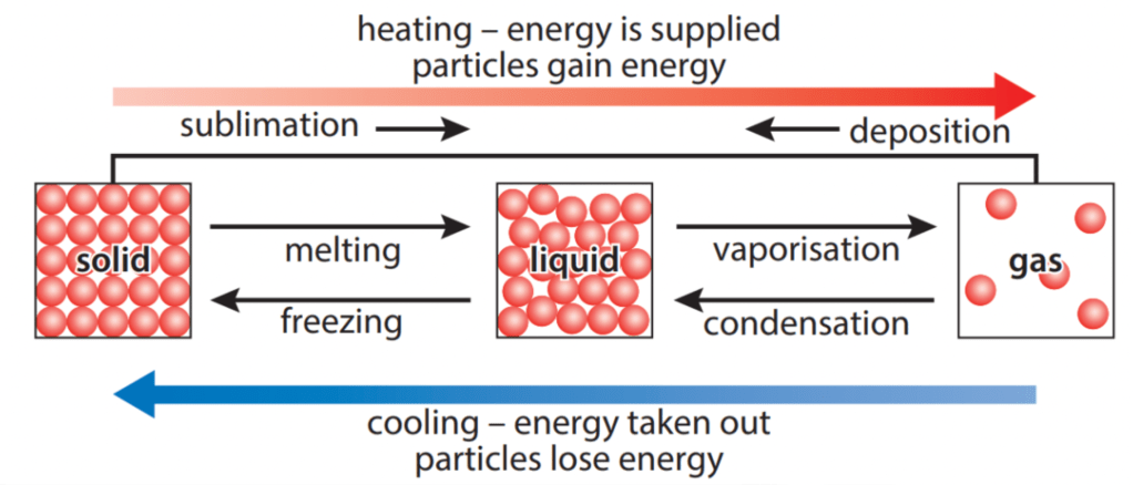 - Interpret the observable changes in physical properties and temperature during changes of state