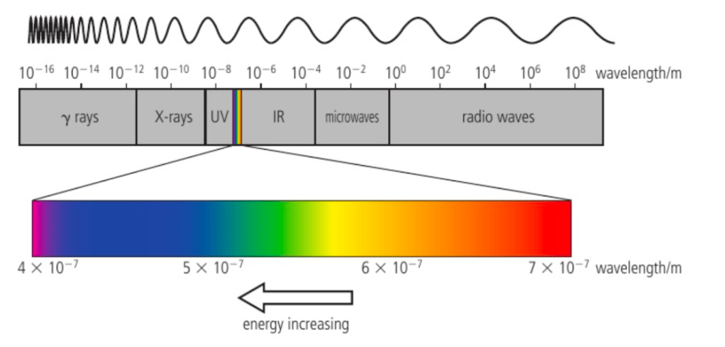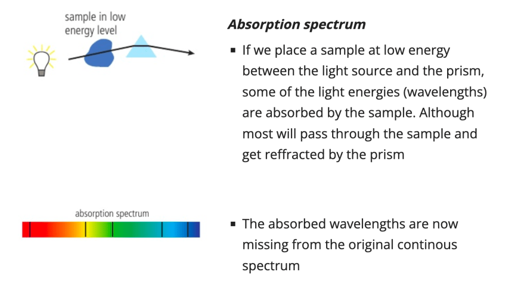 When a white light passes through a prism, different wavelengths are refracted at different angles. This can be observed as the formation of continuous colour (visible) light spectrum as follow;