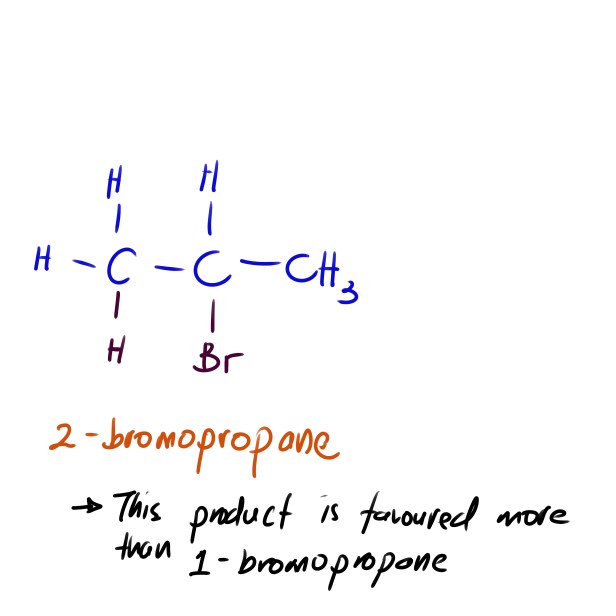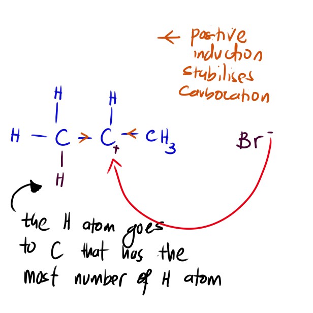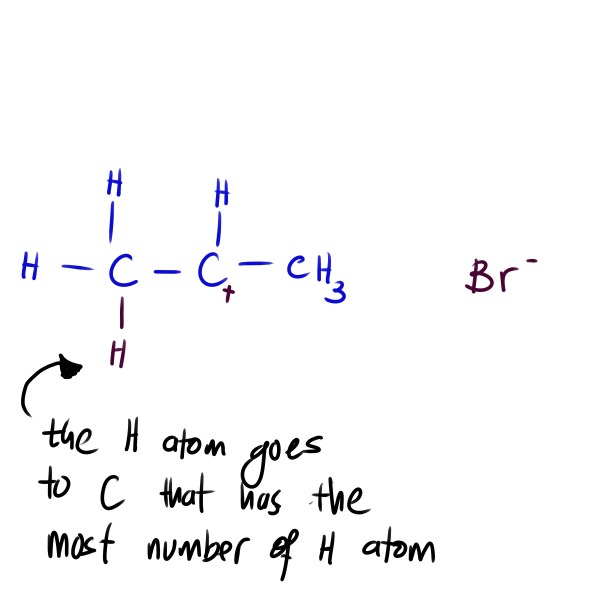 - the hydrogen will attach to the carbon that is already bonded to the greater number of hydrogens