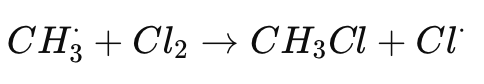 - The newly formed CH3• can attack any other molecule present. If it attacks Cl2, the reaction is as follow: