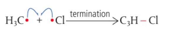 - Reaction can only be terminated when a radical attacks another radical. Some examples are as follow: