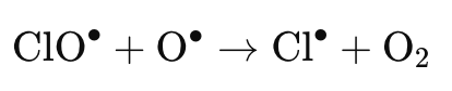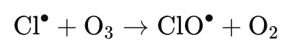 - The chlorine radical reacts with ozone (O₃), breaking it down into oxygen molecules