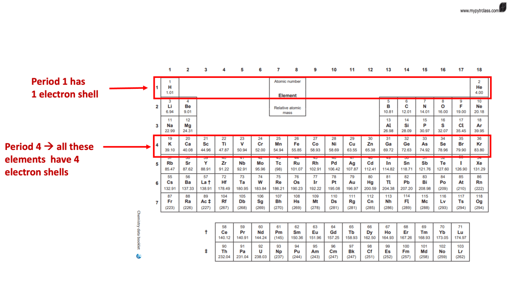 - Periods (Horizontal Rows, 1-7): Elements in a period have the same number of electron shells, with properties changing progressively across the period.
