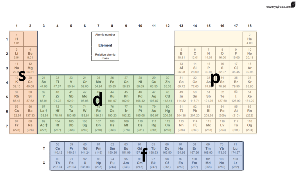 Ultimately, the electron configuration can be deduced by looking at the periodic table. To start with, the periodic table placed elements based on their blocks as follow:
