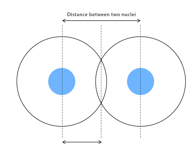 - Atomic radius is measured as half the distance between the nuclei of two neighbouring atoms.