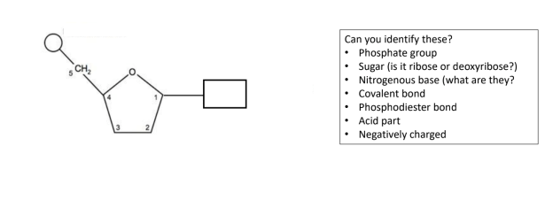 - Describe the sugar-phosphate bonding and the sugar-phosphate “backbone” of DNA and RNA.