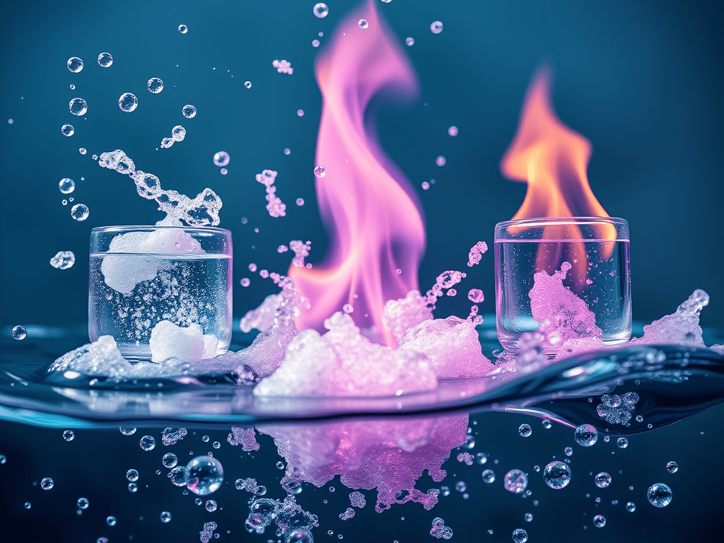- Reacts vigorously, releasing hydrogen. The heat generated is enough to melt the metal, forming a small ball that moves on the water surface.