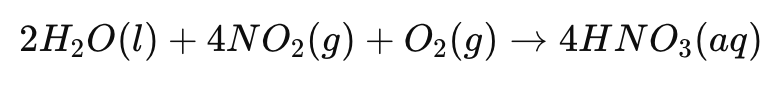 - Nitrogen dioxide dissolves in rainwater, forming a mixture of nitrous acid (HNO₂) and nitric acid (HNO₃):