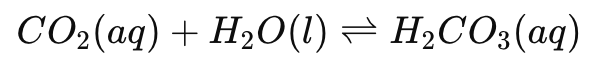 Ocean acidification occurs when carbon dioxide (CO₂) dissolves in seawater, forming carbonic acid (H₂CO₃):