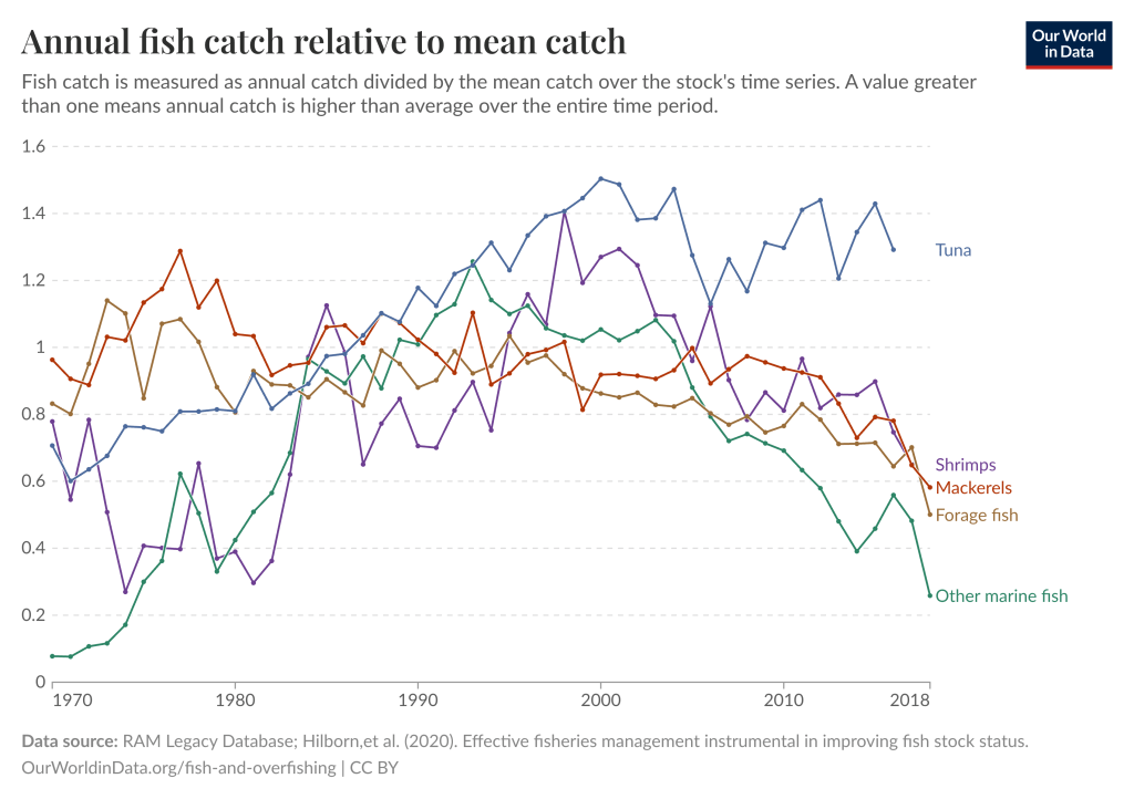 - By the mid-1990s, 20% of stocks exploited in the 1950s had collapsed.