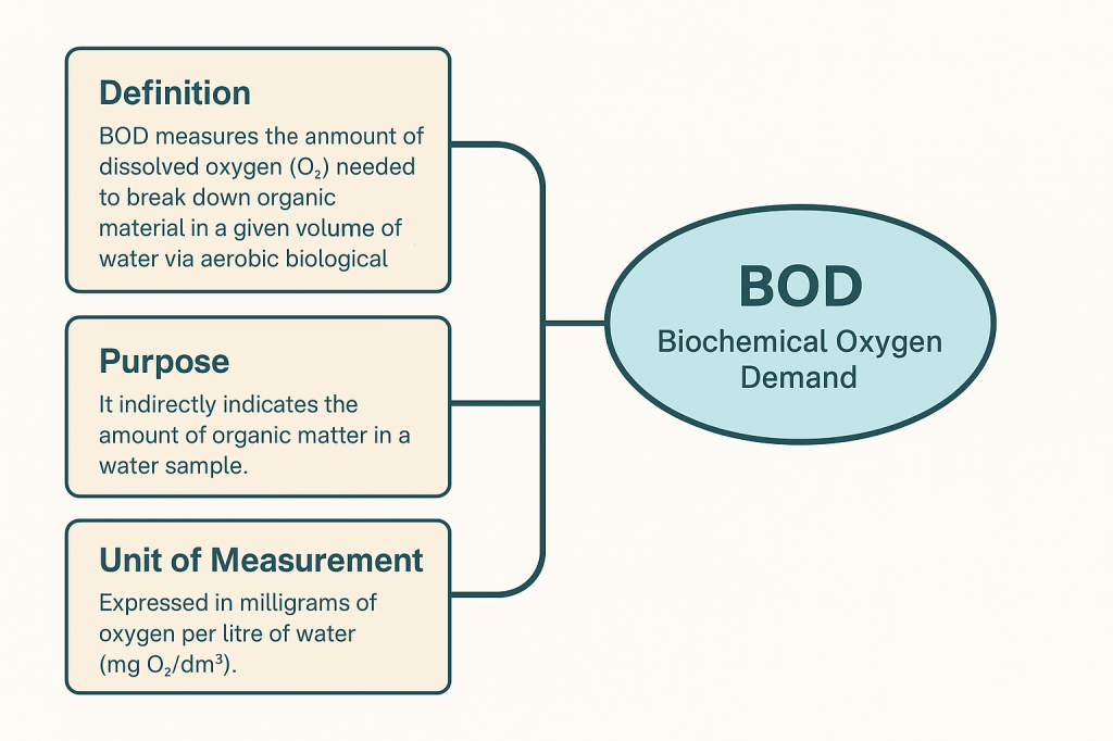 - High BOD levels can indicate organic pollution (e.g., sewage, silage).