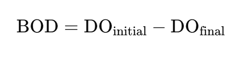- BOD is calculated as the difference between the initial and final oxygen levels.