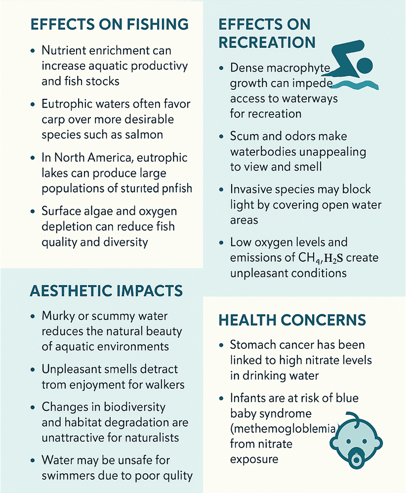 - Eutrophic waters often favour carp, a less desirable species compared to salmon or trout.