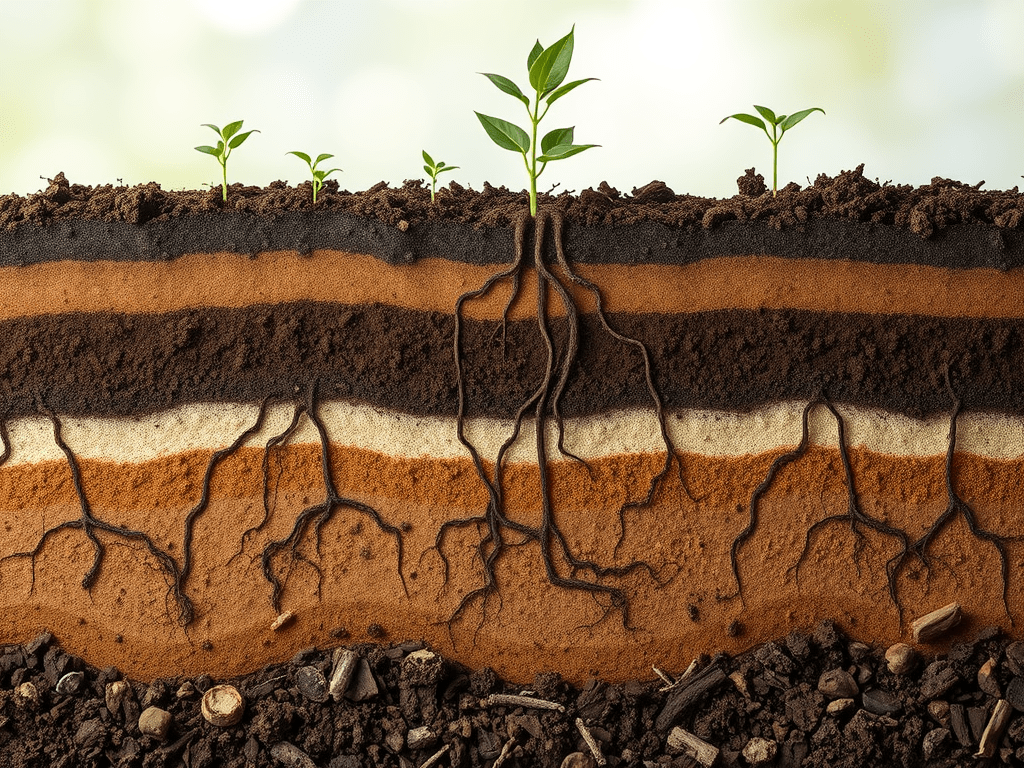 Sandy soils are coarse, gritty, and free-draining, but retain limited moisture and nutrients. Silty soils are smooth in texture, retain more water than sandy soils, and support better nutrient availability. Clay soils are dense, sticky, and cohesive, with a high capacity to retain both water and nutrients. Loam soils, often regarded as optimal for agriculture, represent a balanced mixture of sand, silt, and clay. In loam, sand contributes to adequate drainage and aeration, clay enhances water and nutrient retention, and silt provides cohesion that makes the soil workable.