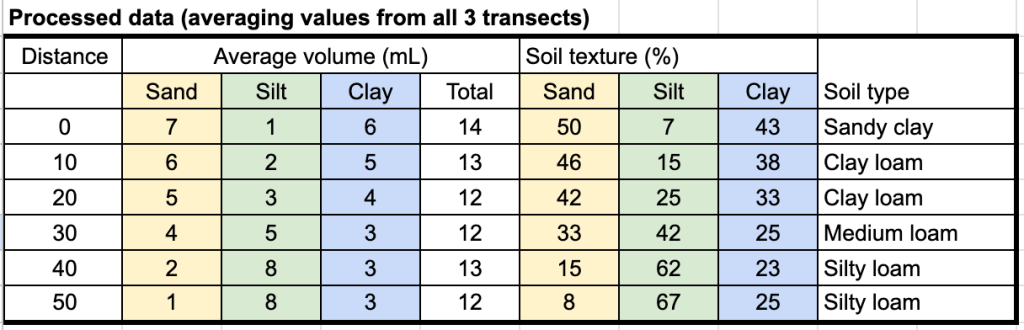 - Explain the change in the soil texture along the transect lines