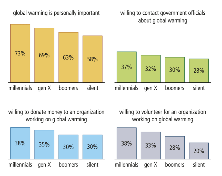Historically, environmental concerns rarely reached the majority of the global population unless issues directly affected them. However, social norms and behaviours have shifted, with greater attention now paid to energy conservation, ethical consumption (e.g., electric vehicles, dolphin-safe tuna), and recycling. Political engagement has also grown, as evidenced by the influence of Green parties and activist groups such as Extinction Rebellion and Greenpeace.