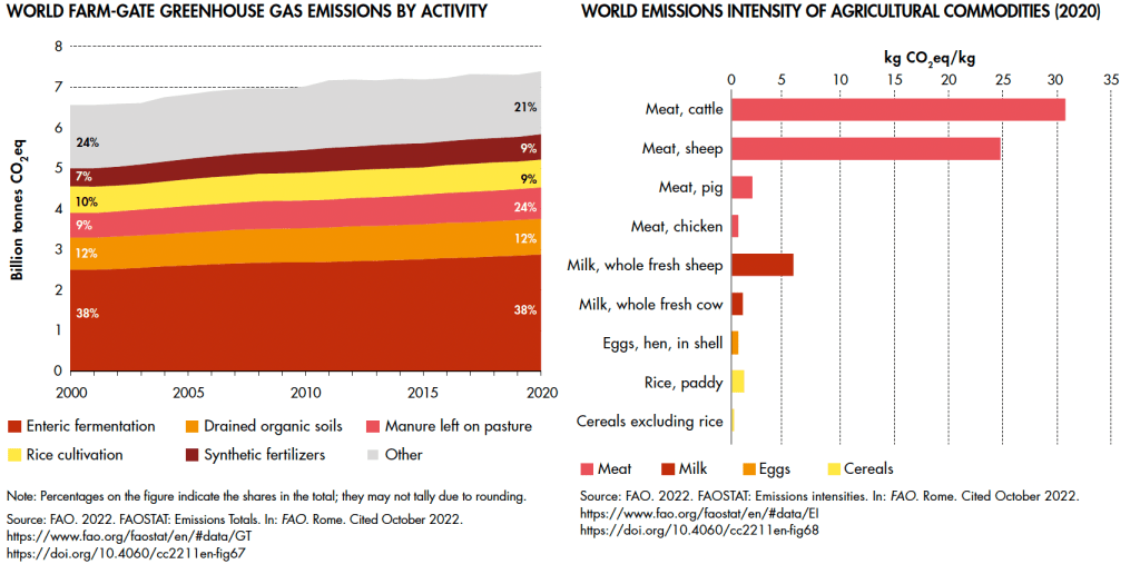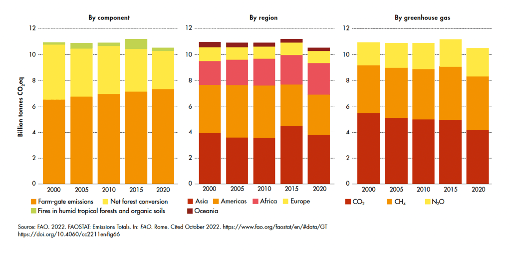 World GHG emission on agricultural land. Source: FAO report 2022.