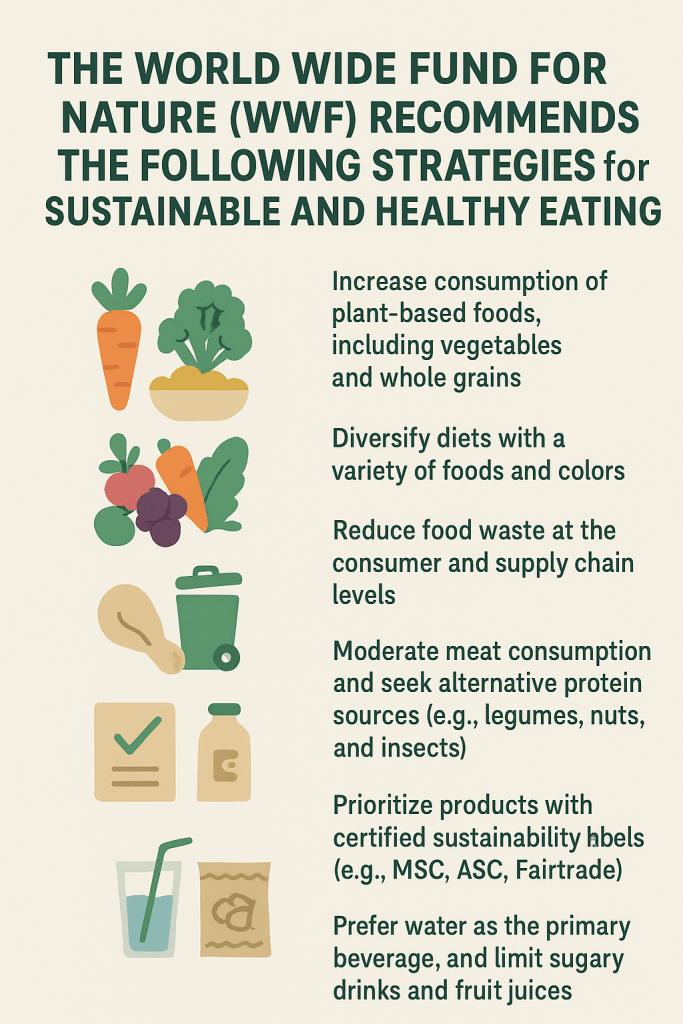 The Planetary Health Diet advocates for a predominantly plant-based diet comprising whole grains, legumes, fruits, vegetables, and nuts, supplemented by modest amounts of dairy, meat, and fish. The recommended daily caloric intake for adults is approximately 2,500 kcal. However, it is not only the type of food but also its origin, production method, and sustainability of harvest that determine environmental impact.