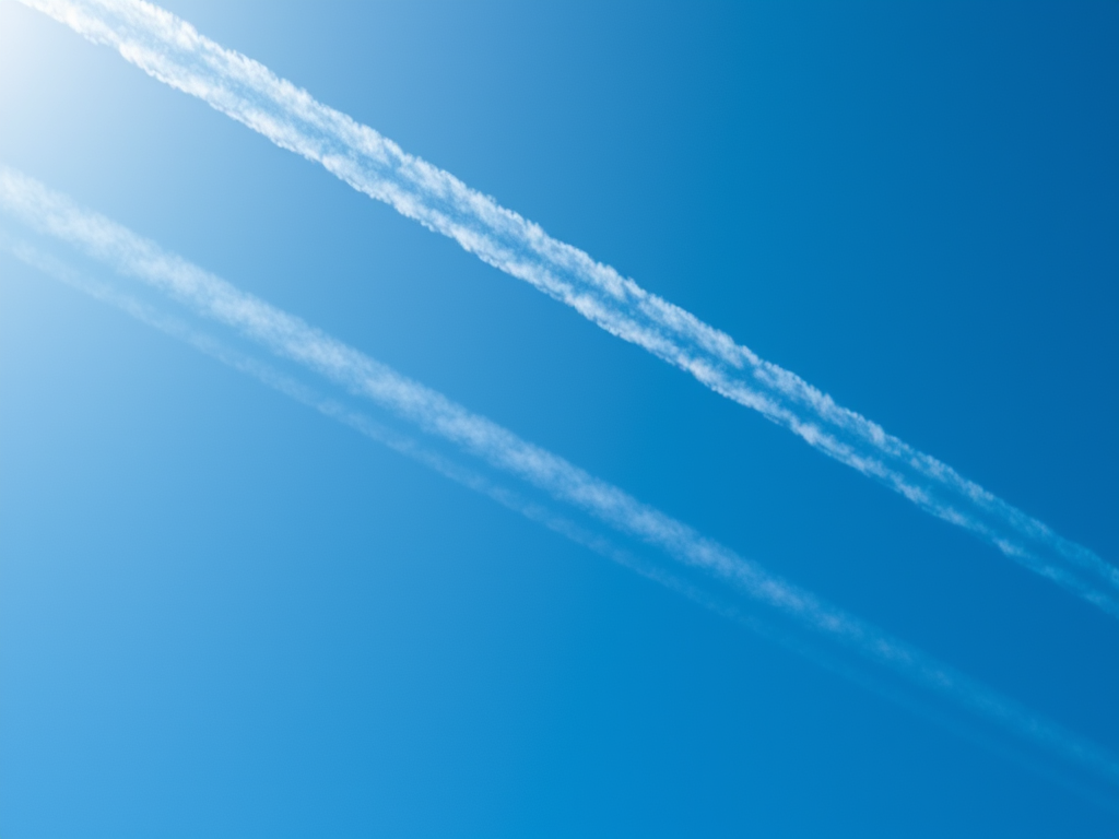 Aircraft contrails—the linear cloud-like trails produced behind airplanes—represent an important anthropogenic influence on climate. Jet fuel combustion generates water vapor as the primary emission, along with carbon dioxide, unburnt hydrocarbons, nitrogen oxides, soot particles, and carbon monoxide. The expelled water vapor rapidly freezes into ice crystals, and under favorable atmospheric conditions, these crystals stimulate the development of larger cloud structures.
