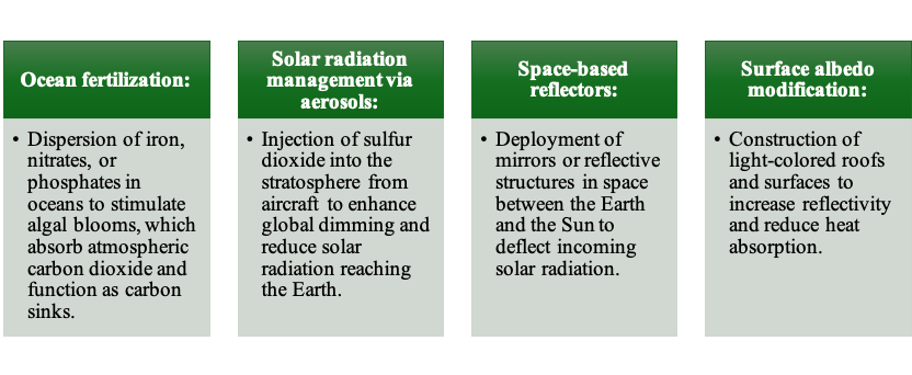- Geoengineering approaches.