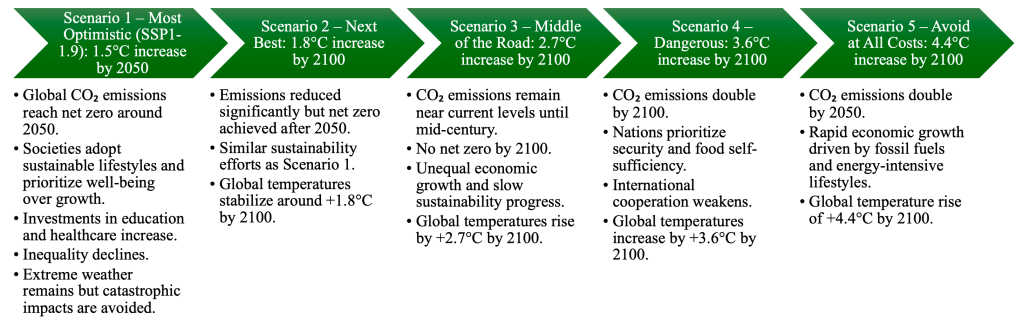 - Emission Scenarios (Shared Socioeconomic Pathways – SSPs):